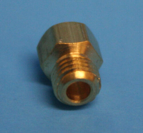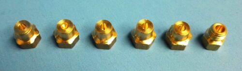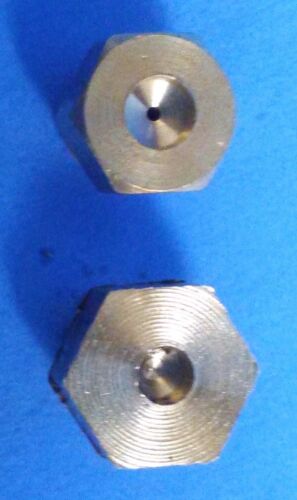 These brass orifices are a replacement for appliances that use male threaded orifices. The pointed orifices are for the top side and broiler, while the special orifice jets fit into the burner control knob assembly to control the low flame..
